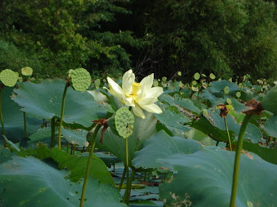 We went to this shop called "Iron and Lace". The wife is a potter and sells her wares. She's at the potter's wheel a good share of the day. Almost all (if not all) her wares have a Queen Anne's lace (wild flower that grows in the Midwest) that is placed over the glaze on the pieces and then fired on.